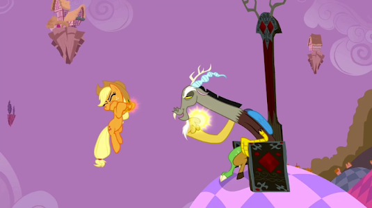 It's also suggested that Discord lied the entire ordeal to meet with Fluttershy and the Cutie Mark Crusaders, but even then, why wouldn't he just wait until a better time when they're all together, or rather set up a non-supernatural circumstance where they can hang out? There's no reason he'd craft such an elaborate lie for something as simple as him wanting to play with his friends--especially Fluttershy!